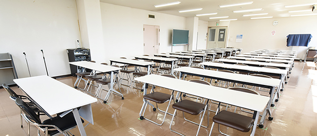 広々とした研修室、運動でリフレッシュできる体育館やグラウンド、さらに自然体験やレクリエーションも取り入れられる柔軟さが魅力。学びと遊びのバランスがとれたプログラム設計ができ、仲間との絆が深まる充実の時間が待っています。管理棟は、大研修室(200名)中研修室(60名)がそれぞれ1部屋、小研修室(30名)が2部屋あり、研修やミーティング等に利用できます。