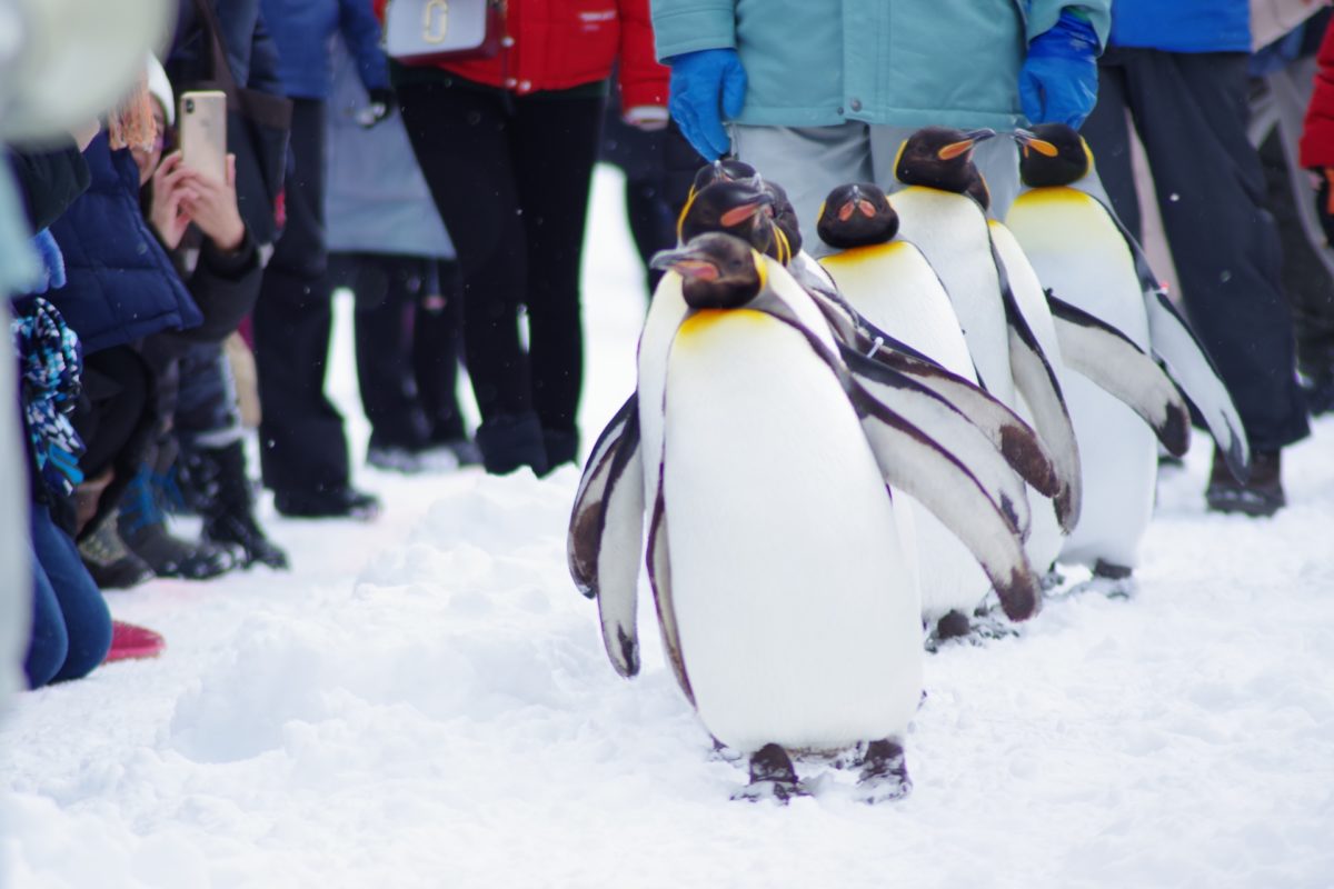 旭山動物園では、季節や時間帯ごとに様々なイベントが行なわれます。特に雪が積もる時期に行なわれる、運動不足解消のためにペンギンが柵から出て散歩をするイベントは人気があり、まるで南極に来たかような光景を見ることができます