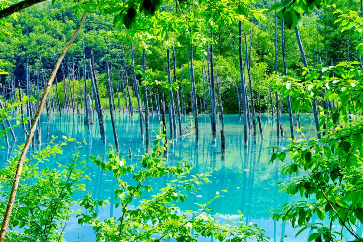 SNS映えスポットとしても有名な「青い池」。2012年にApple社のMac OS Xに壁紙に採用され世界的に有名な観光地となりました。