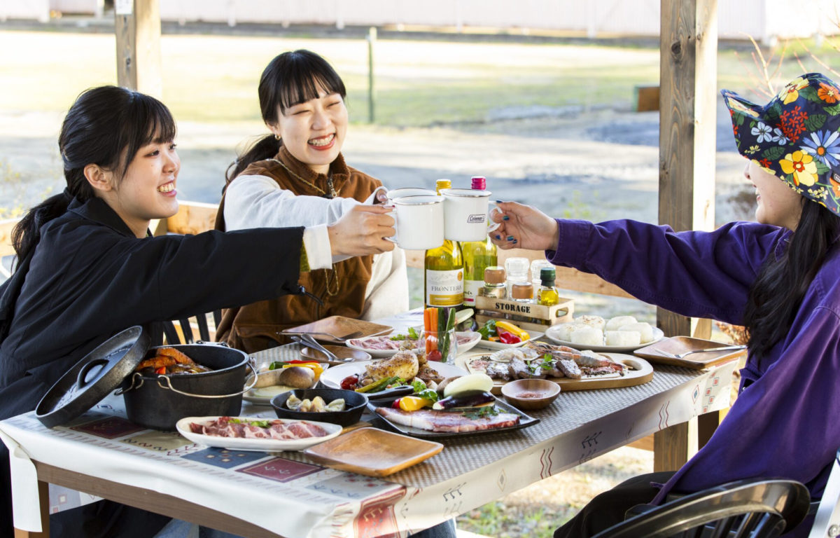レトロな木造校舎を改築した昭和の時代を体感できる「昭和ふるさと村」。その施設内にある校庭でのオートキャンプ、グランピング施設です。