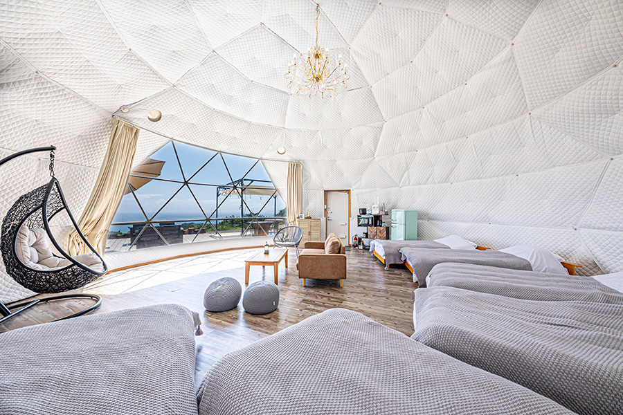 年間を通じて温暖な気候に恵まれた、 静岡県伊豆半島の高級別荘地が立ち並ぶ伊東市に、静岡県初の 源泉かけ流しの客室温泉を配した グランピング施設「グラン…