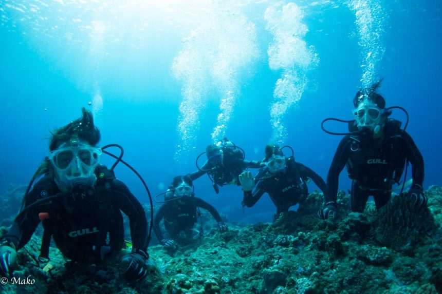 リブリーザーダイビングを中心としたプランですが、オープンサーキットでのダイビングでも学生を応援します。