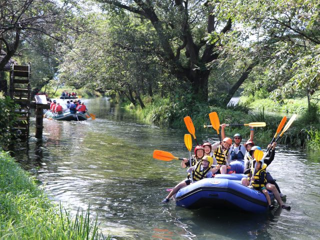 水量が豊富でダイナミックなスピード感のある川下りが楽しめます。