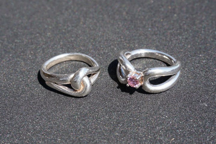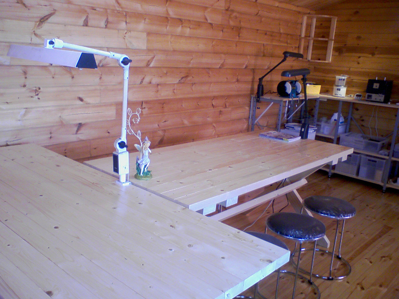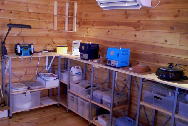 自然に囲まれたログハウスの中でオリジナルのシルバーアクセサリー作り