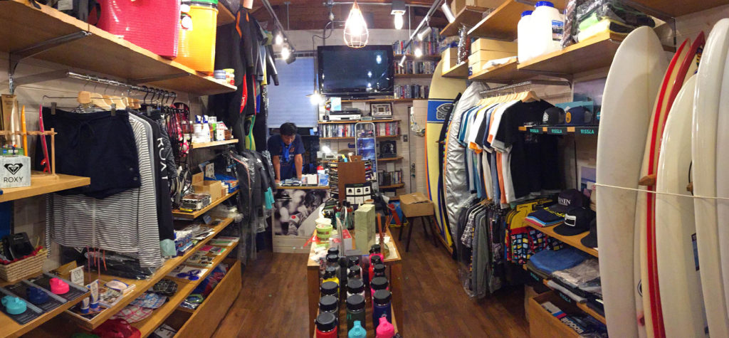当店はサーフショップも併設しておりますので、サーフィン・サップともに、厳選した信頼のおけるブランドを取り扱い、経験豊富なスタッフ(インストラクター)が各々に適した道具選びのご相談にも応じます。