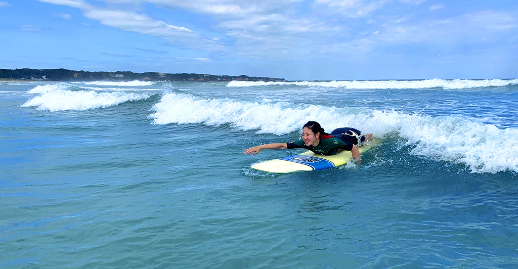 サーフィンを始めたばかりの方や、しばらくサーフィンしていないというブランクのある方、自身でテイクオフ出来るようになったので横に進みたい、ターンを覚えたいなど、もっと上手くなりたい方の為のコースです。
