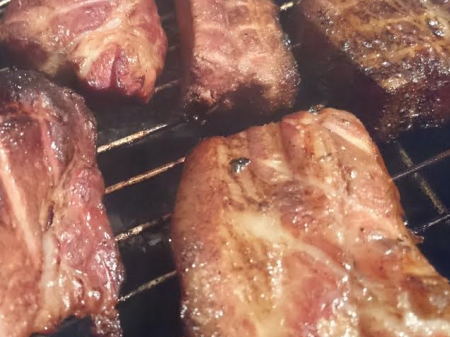 スモークチップを使い、まるでお肉を育てるように。スモークされた豚肉の味は格別です。