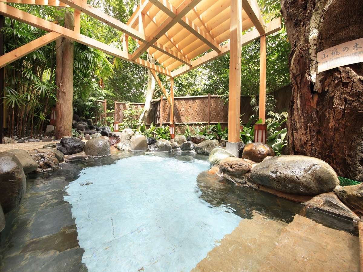 やまももの木の下で、湯のせせらぎを聞きながら浸かる「やんも」。