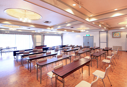 スクール形式の会議や、展示会場など多目的会場として用途に合わせてお支度いたします。