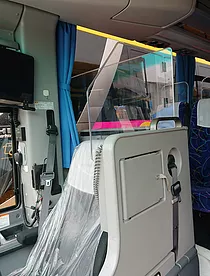 お客様が降車し休憩中、運行終了後には消毒液で手すり等触れる箇所の消毒実施。