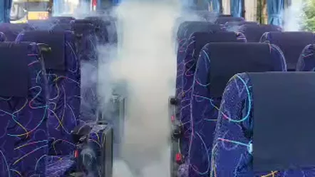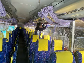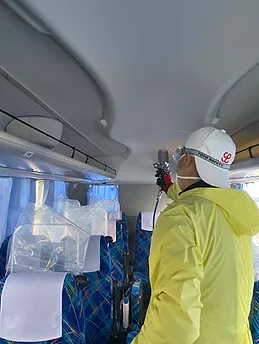全車両、アルコール消毒液、マスク、次亜塩素酸噴霧器を搭載しております。