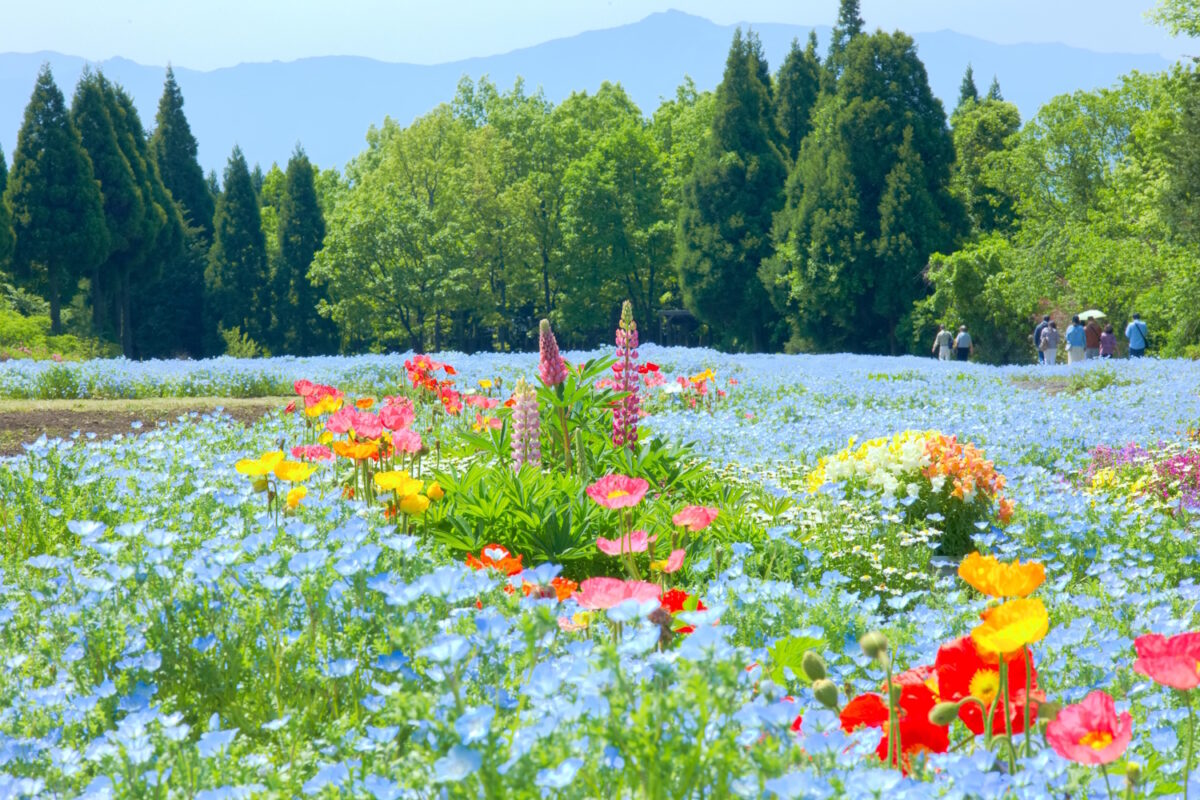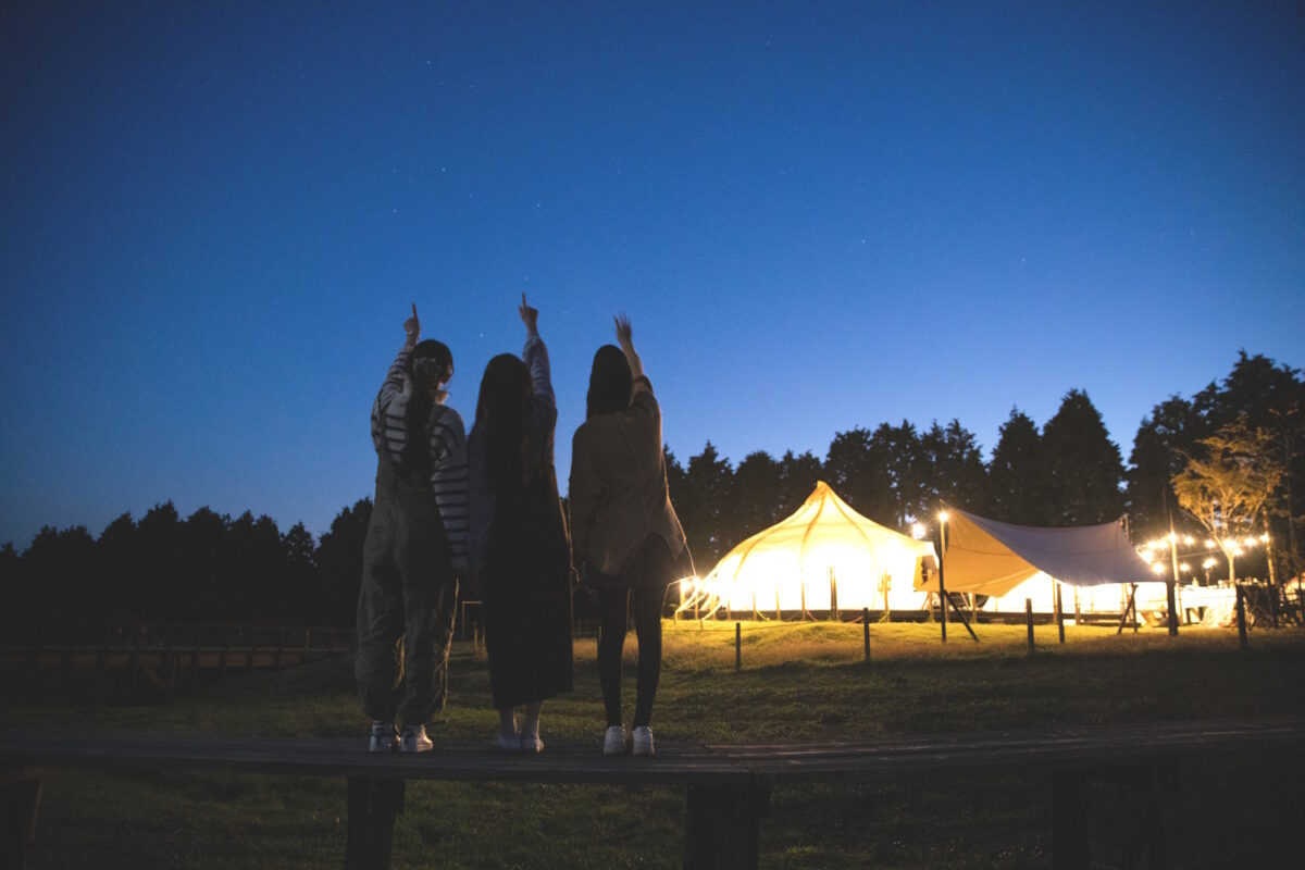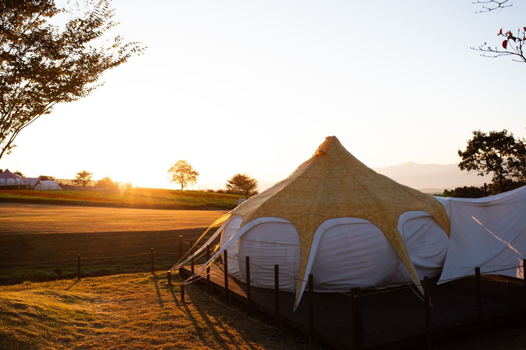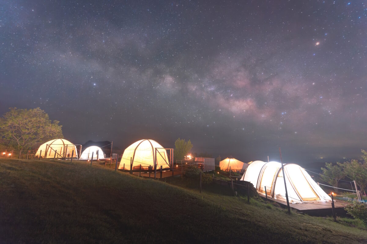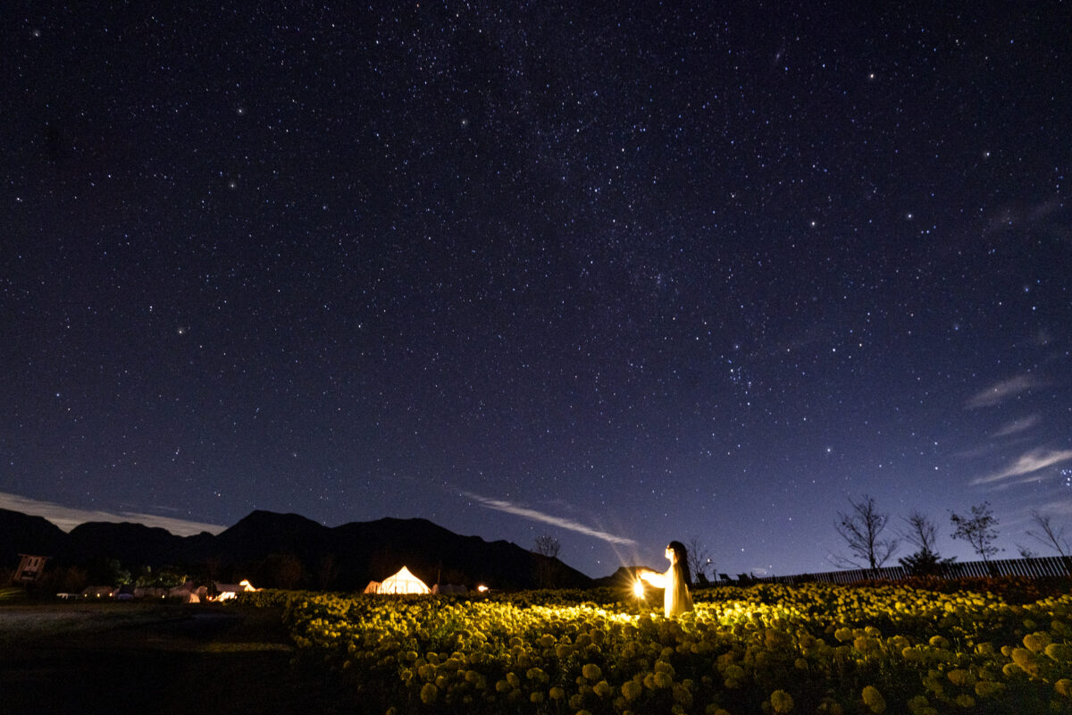 花と星に囲まれたくじゅう花公園内のグランピングパーク