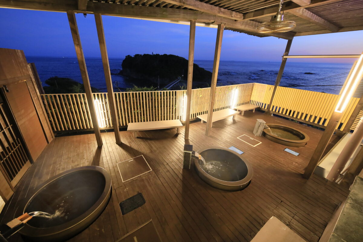 貸し切り温泉も2室ありますので、プライベートの時間をゆっくりと過ごせます。海を眺めながら、ゆっくりと温泉に浸かり疲れを癒してください。