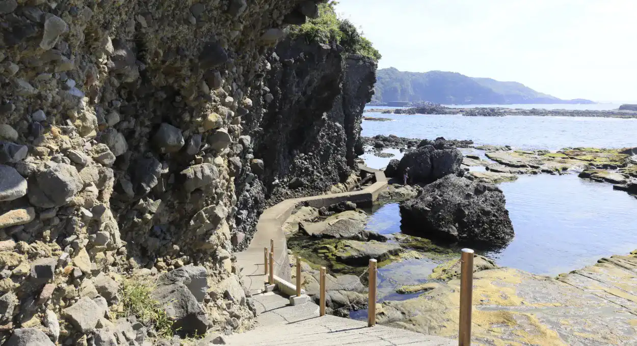 島を一周する遊歩道には、軽石や火山灰が作る美しい縞模様や、荒々しい水底土石流など、太古の海底火山の名残があります。