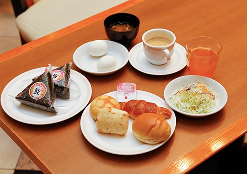 パン、おにぎり、サラダ、コーヒーをお好きなだけとって頂けるのでお急ぎのビジネスマンにも好評です!