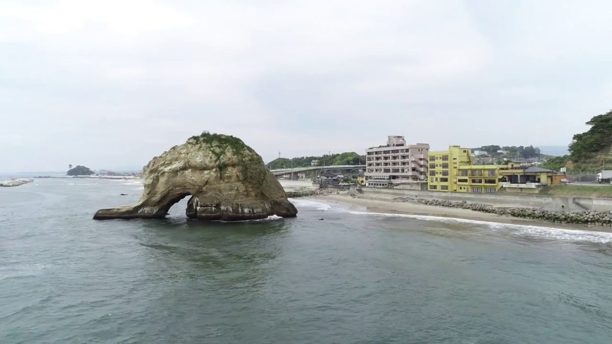 北茨城のランドマーク 二つ島。二つの岩が連なって形成されていた二つ島は、震災以降、小島は海底に沈み、親島は崩れ形をかえてしまいました。そこへはじめて二つ島を訪れた旅人が言いました。≪象の神が舞い降りた…≫