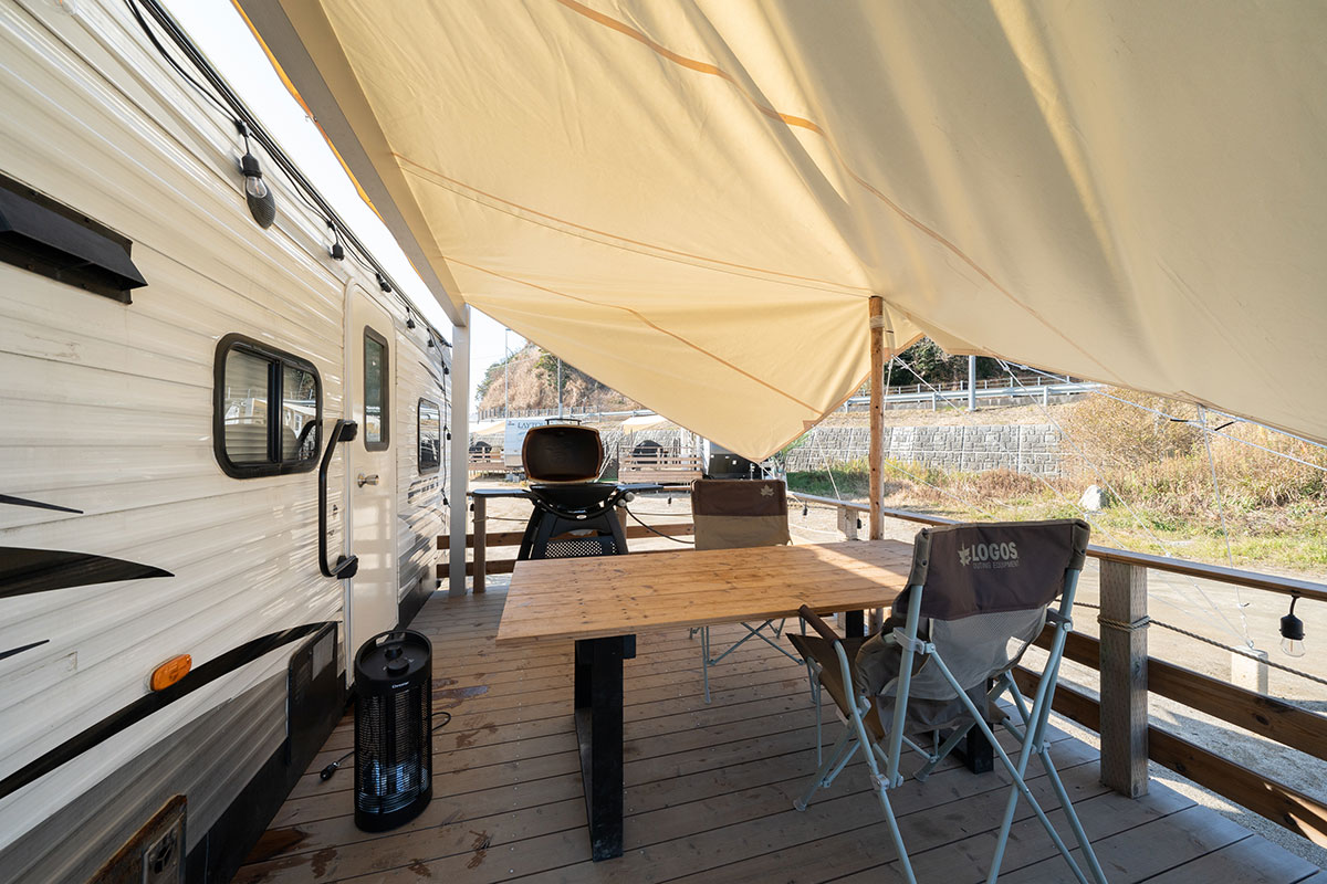 お客様専用の外部リビングで、アウトドアグランピングをご利用いただけます。