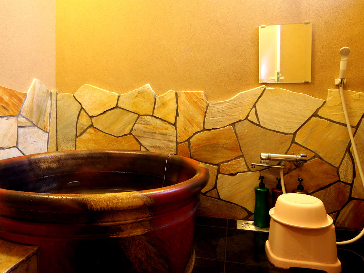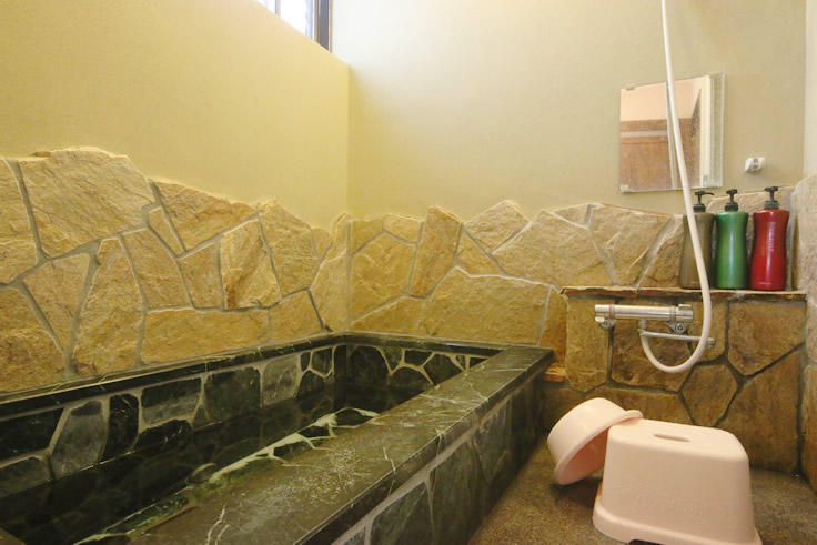 伊豆原産の石で、韮山反射炉でも使用されていた幻の石で作られたお風呂です。