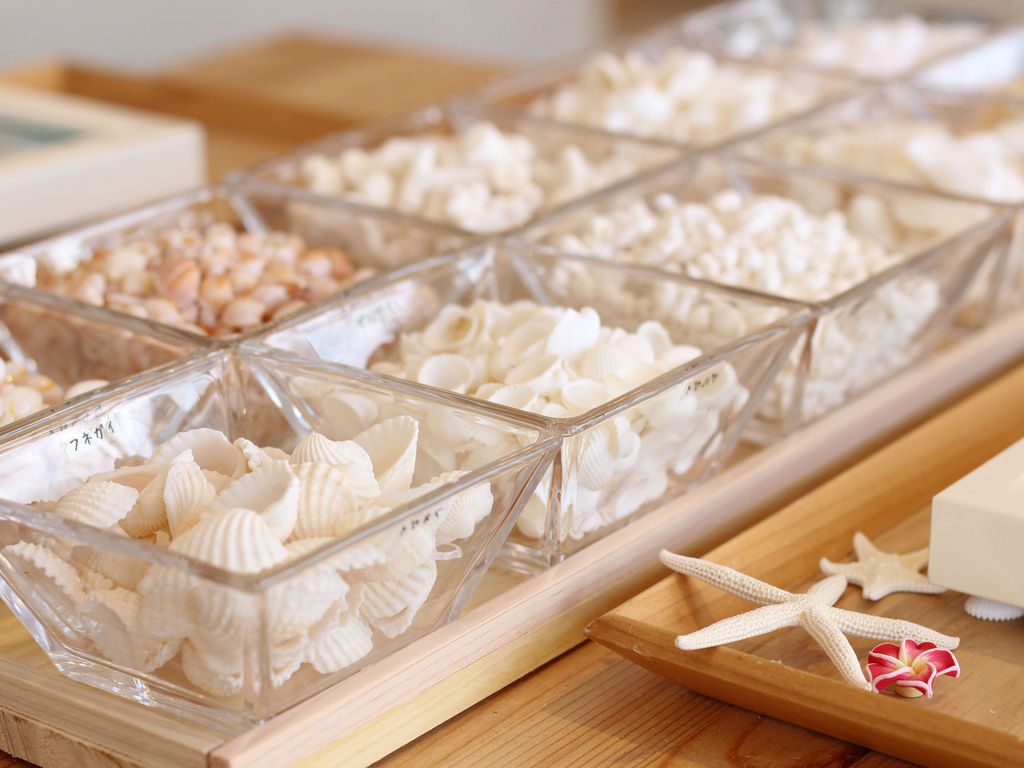 海の雑貨に囲まれて、ゆったりと手作り体験をお楽しみください。