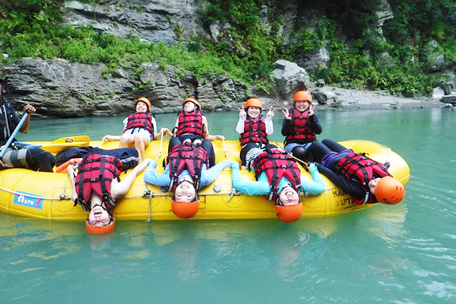 注意事項 ★団体割引 20名様以上のお申し込みで、ラフティング料金5%引き! ※大人のラフティング料金のみ割引対象になります。各種割引との併用は出来ません。 当日の人数が20名を下回った場合には、割引の適用外になりますので、ご注意ください。 ★保険について ツアー中の安全確保には万全を尽くしておりますが、万が一の事故に備えて保険付きで設定しております。保険代金は、ラフティングツアーの料金に含まれています。 |