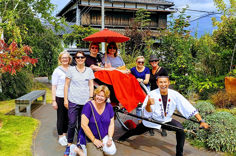 世に人力車は数あれど、人力車のきらく屋は「乗る人の人生に喜び、楽しみ、笑いを提供する」をモットーに営業しております。