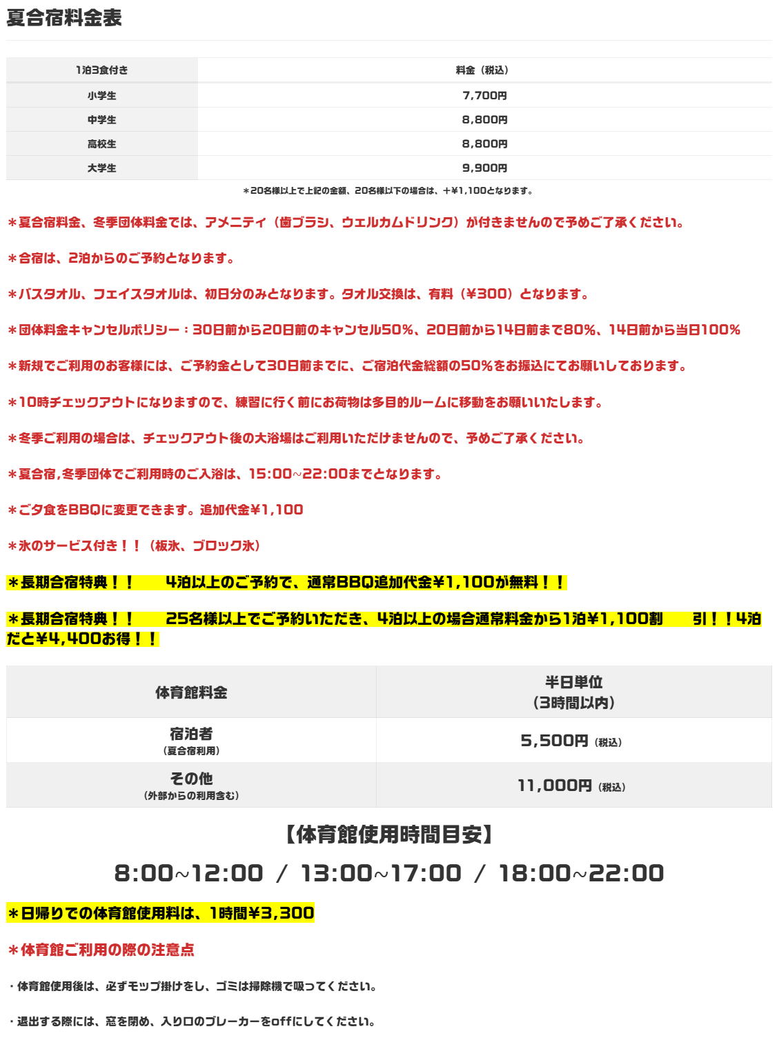 K・Lodgeの体育館を所有しており、お食事もボリューム満点です!