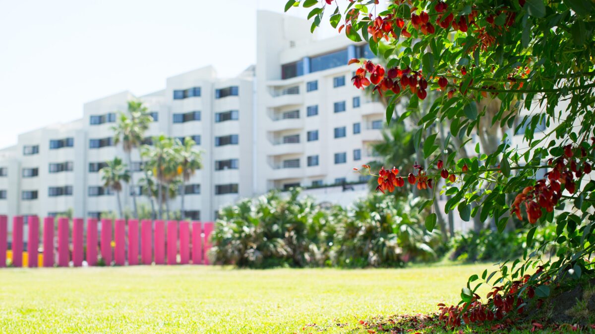 コバルトブルーの海を望むオーシャンビューの客室、国内最大級の芝生のガーデン、そこから続く海岸線、風にたなびくパームツリー、目にも鮮やかな四季折々の草花…。