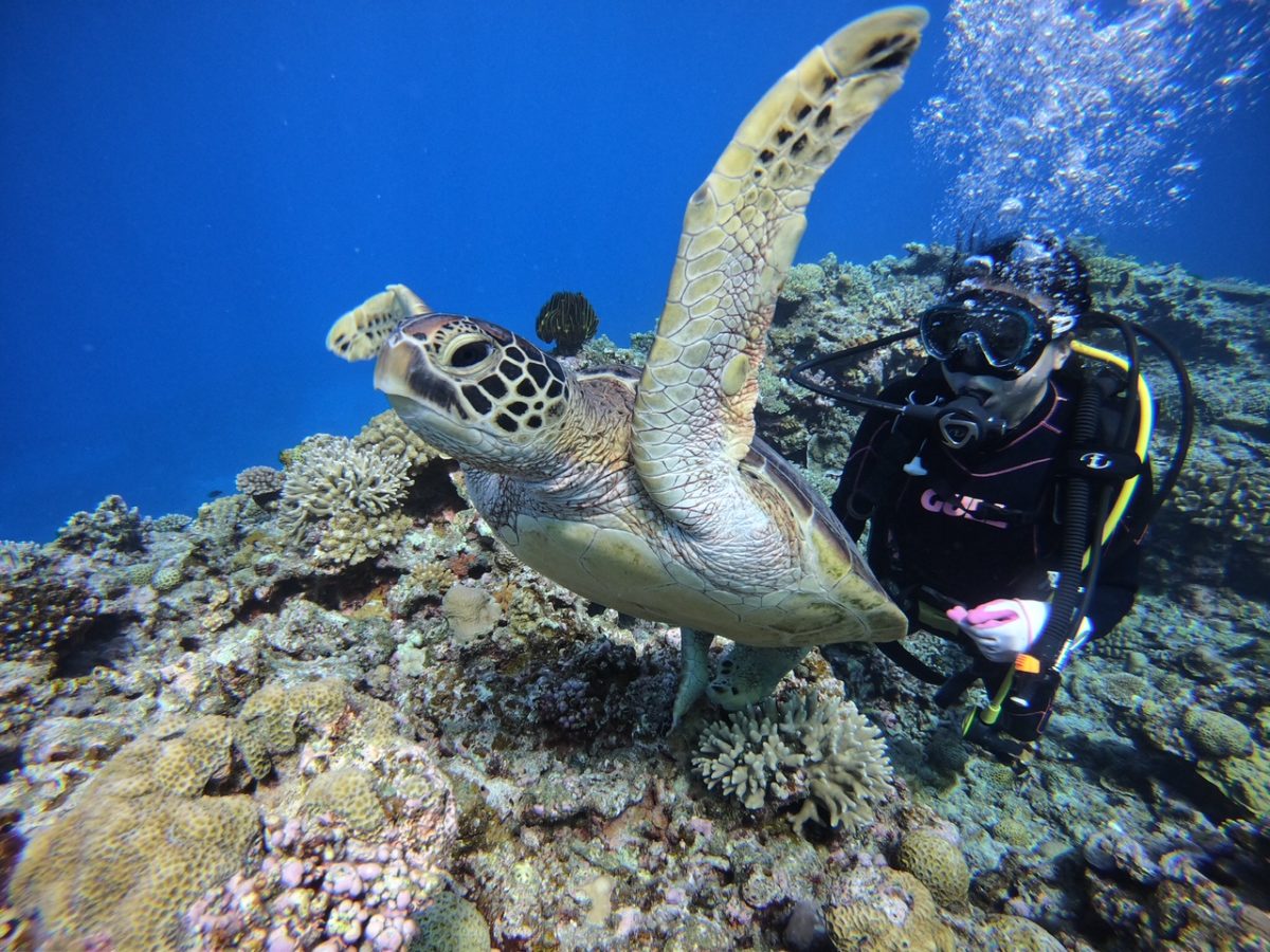 ポイントによって、ウミガメやサメに高確率で出会える場所も!