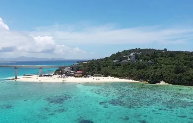 沖縄本島北部にある車で行ける小さな離島、瀬底島、あんち浜