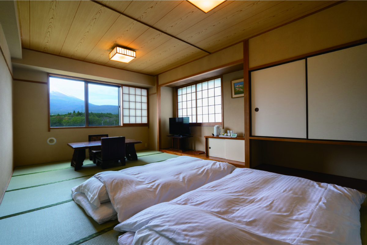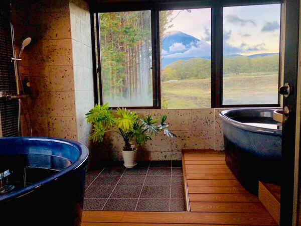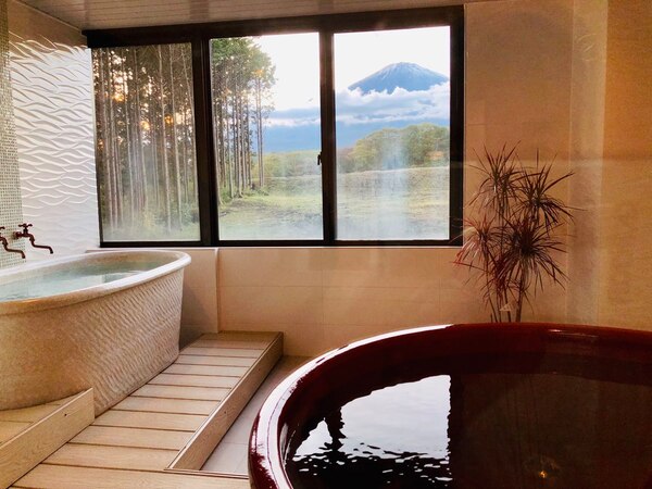 目の前に広がる雄大な富士の風景と、日本庭園と原生林を組み合わせた一万余坪の庭園。