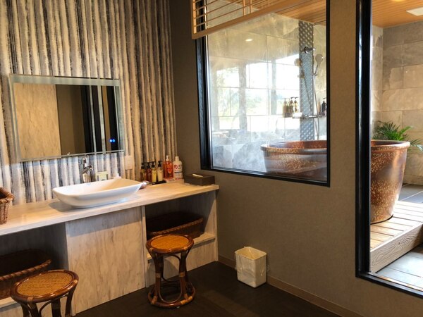 明治・大正・昭和・平成・令和まで時代の流れをイメージした貸し切り風呂の温泉で、古き良き、和の世界へ想いを馳せる。春夏秋冬、違う表情を見せる客室の窓は、非日常へとつながっています。