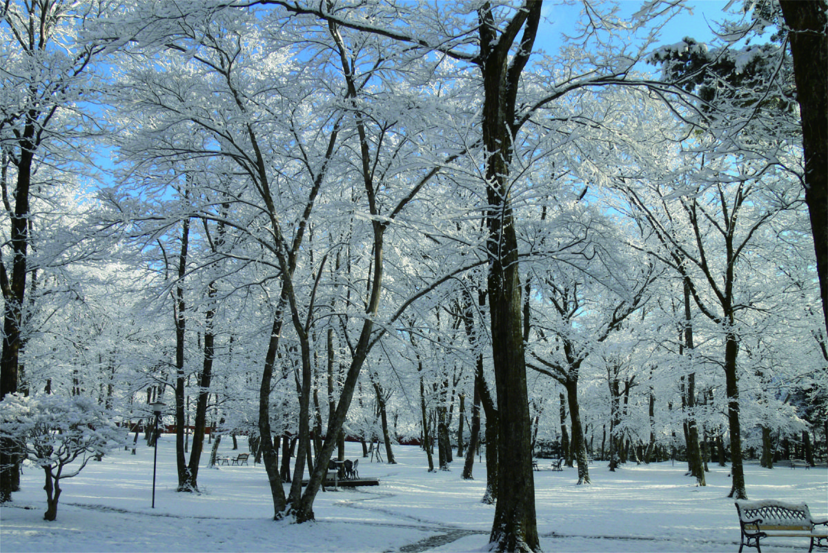一万余坪の広さを誇る庭園『庭十三景』は、春は桜、夏は木々の緑、秋は紅葉、冬は美しい雪景色と、四季折々に表情を見事に変える。