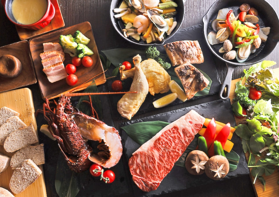 黒毛和牛ステーキにアクアパッツァ。石窯パンのチーズフォンデュにスペアリブなどなど。