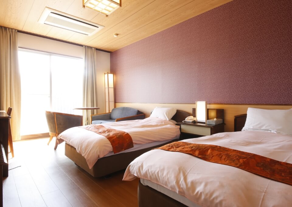 洋室は全室デュペスタイル(羽毛布団)で、 快適にお休みいただけます。