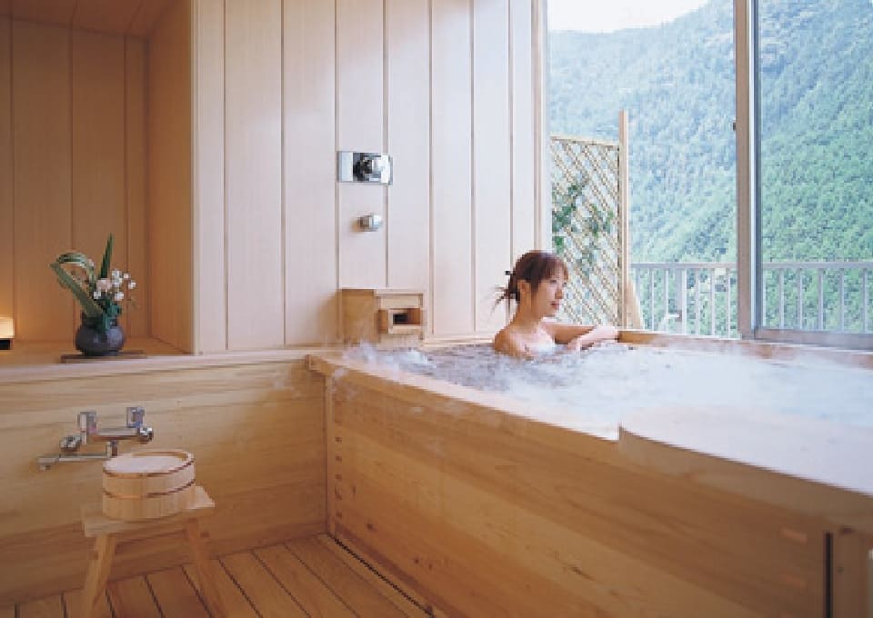 檜風呂にゆったり浸りながら絶景を望む癒しのひと時をお楽しみください。