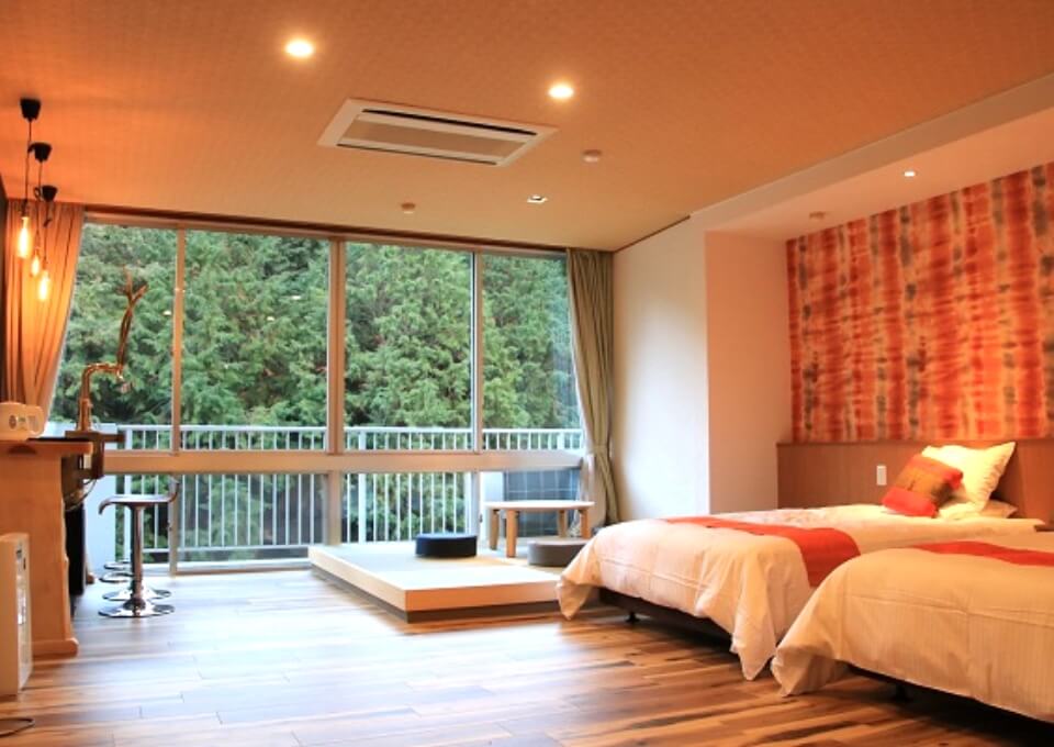 雄大な緑を見渡すくつろぎの和の空間をお楽しみください。