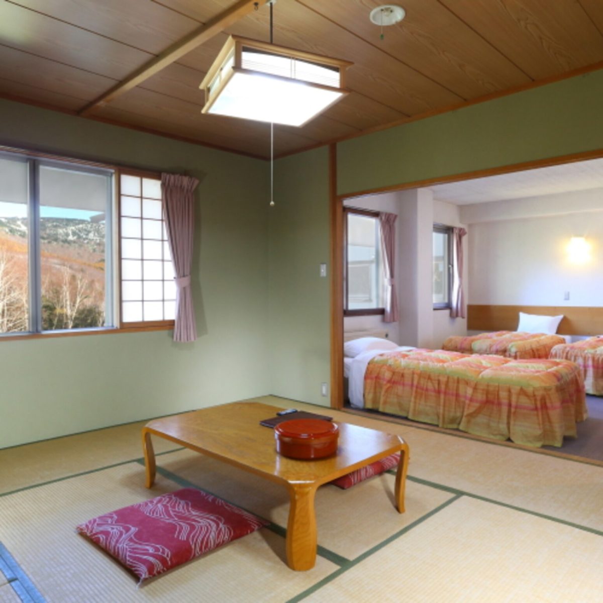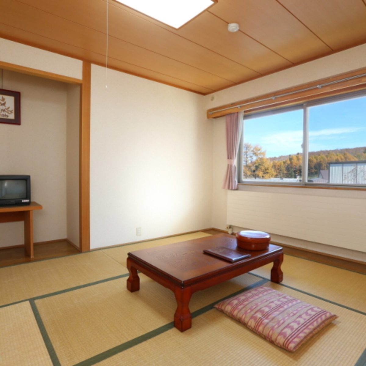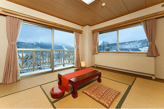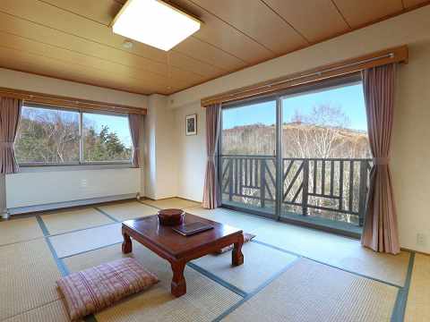 大きな窓から志賀高原を望むことができる広々とした和室です。