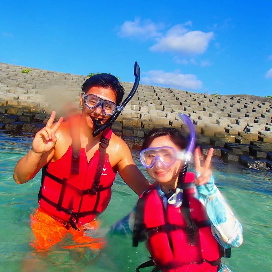 ガイドスタッフと一緒に足の着く状態でまずはシュノーケルでの呼吸方法、マスクの水抜き、泳ぎ方の練習をするので不安を無くして、楽しくシュノーケリングを楽しむことができます!