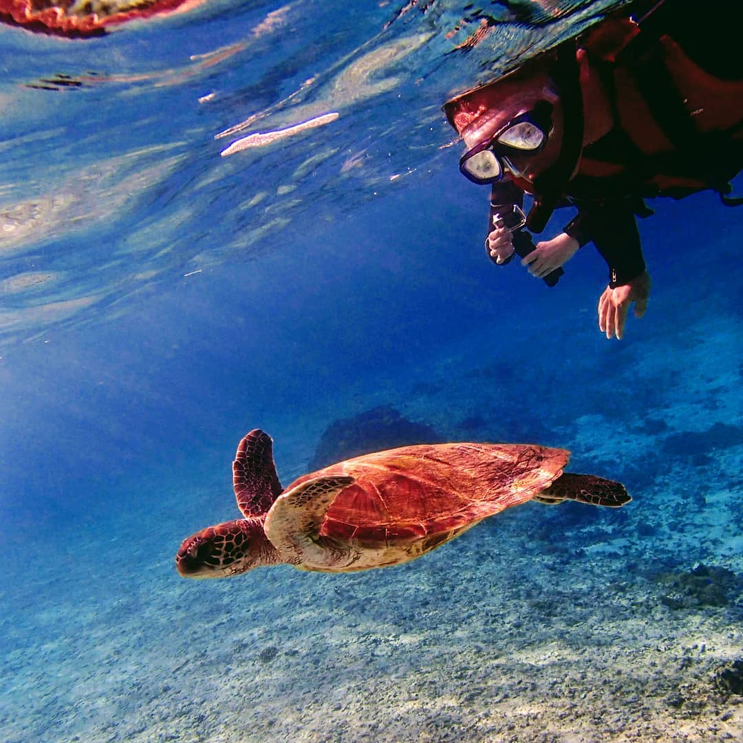ウミガメとのランデブーショットは最高の思い出になること間違いなし!