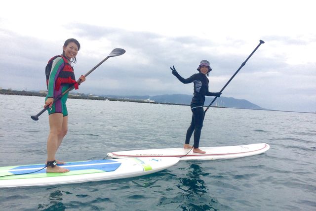 トレーナーも一緒に同行するので、SUPの上でバランスの上手なとり方や、効率よいパドルの使い方などを丁寧に教えます。