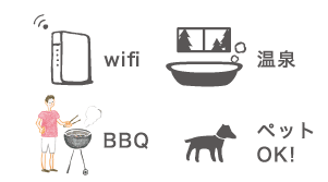 周りは森に囲まれ、綺麗な星空が見られる静かで落ち着いた環境の中で家族や仲間とゆっくりとお過ごしください。