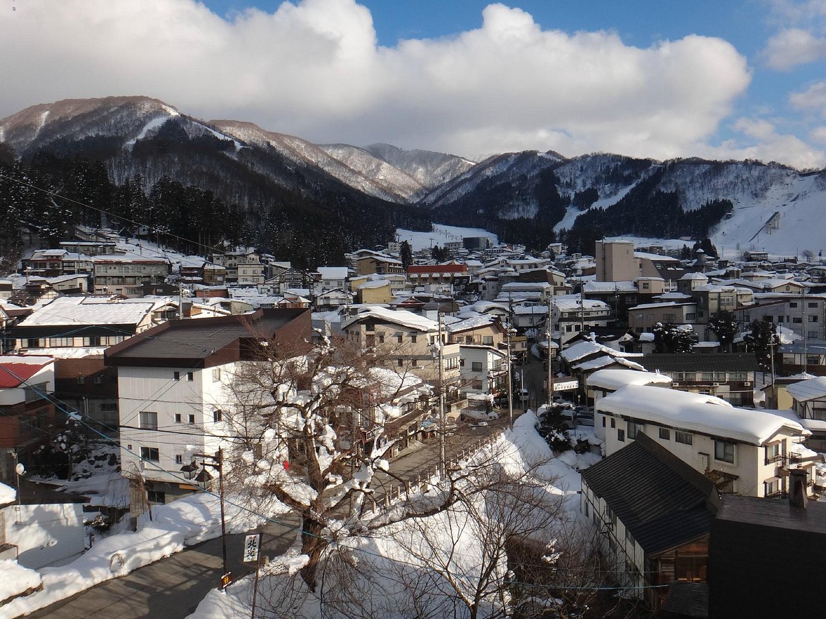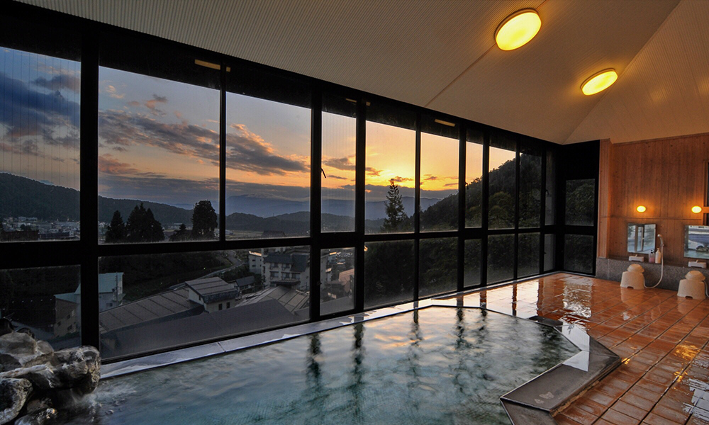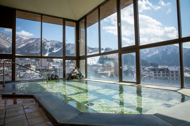温泉街の高台に位置し、野沢温泉随一の眺望の温泉大浴場