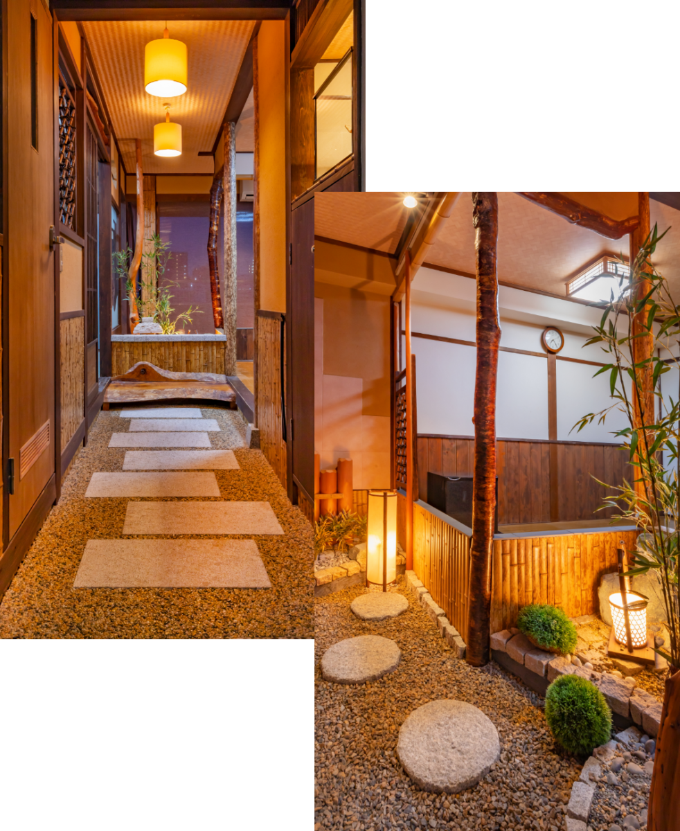 室内にある坪庭では京の風情を楽しみながら、優雅にお過ごしくださいませ。