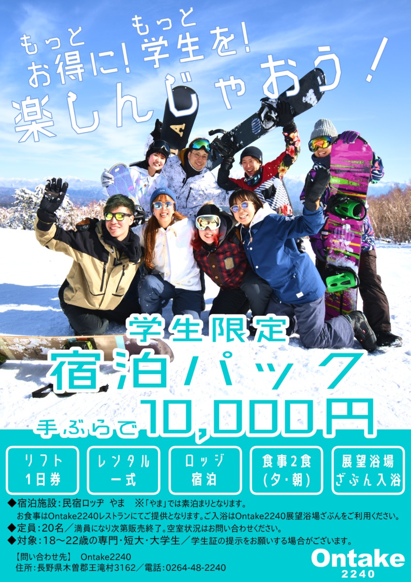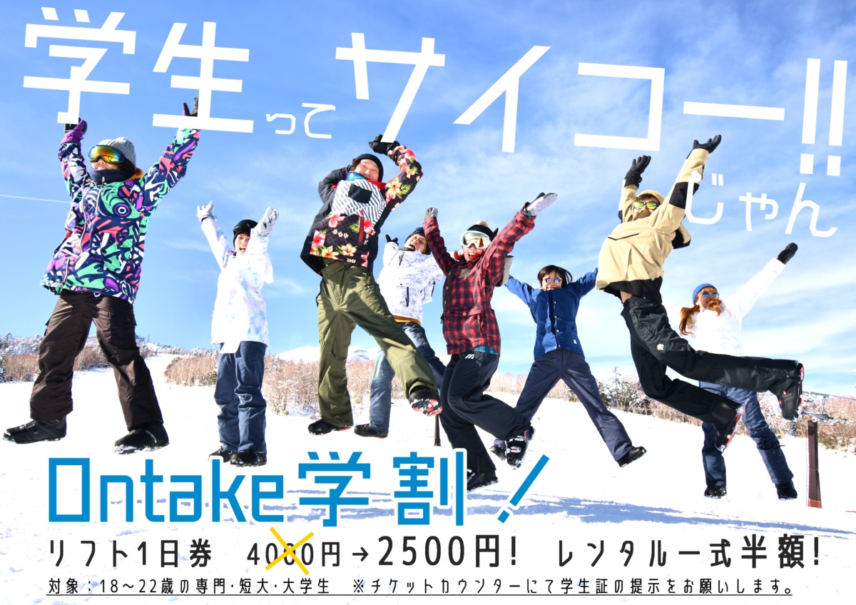 18歳~22歳の専門・短大・大学生を対象に『Ontake学割プラン』のご紹介です!