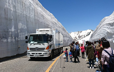 長野県の大町市扇沢駅~富山県立山町 立山駅までの区間をロープウエイなどを乗り継ぎ、いくつもの景勝地を通り標高3000m級の峰々が連なる北アルプスを貫く、世界有数の山岳観光ルートです。