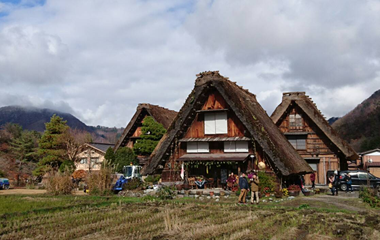 岐阜県大野郡白川村にある「白川郷合掌造り集落」は1995年に世界文化遺産に登録されミシュランで3つ星として掲載された日本を代表する観光地で、田んぼに囲まれた中に茅葺屋根の家が点在する山村の景色は、まさに日本の原風景。