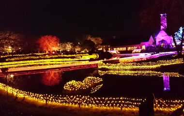 三重県桑名市にある「なばなの里」のイルミネーションは、秋には紅葉のライトアップ、春には桜のライトアップが行われイルミネーションと共に美しい景色を眺めることができます。全長200mの「光のトンネル」。「可愛い花びら」をかたどった最新のLEDによって作られる幻想的な空間は特に人気のあるスポットです。