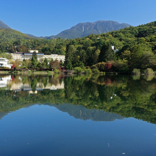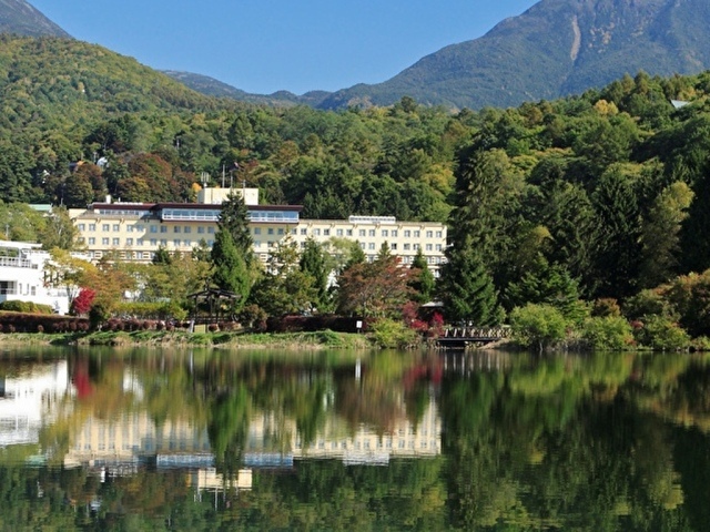 彫刻公園の向こうには蓼科湖が臨めます。※お部屋により眺めは異なります。