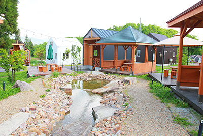 グランピングとは、グラマラスとキャンプィングを合わせた俗語で、優雅で華やかなワンランク上のキャンプスタイルを言い、『四季の郷』では専用のプライベートウッドデッキにオシャレなティピー(アメリカンテント)で日常では味わえない新しい体験を楽しんでいただくことを提案いたします。専用ベンチ、ハンモック、もちろんバーベキュー機材は設備されており、貸しコテージ同様手ぶらでご来場いただけるようご用意いたしております。