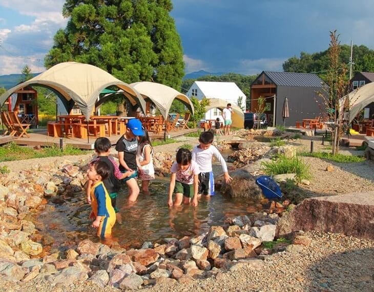 日帰りBBQコーナー中央に流れる小さな小川。夏は水遊びも楽しい~!